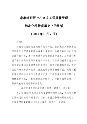 李泰峰副厅长在全省工程质量管理标准化现场观摩会上的讲话.docx