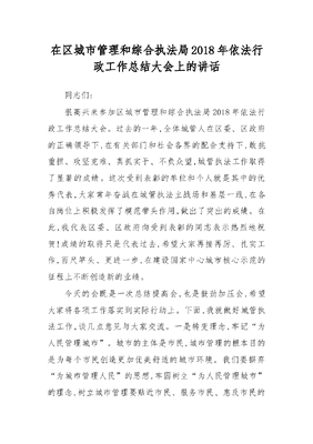 在区城市管理和综合执法局2018年依法行政工作总结大会上的讲话.docx