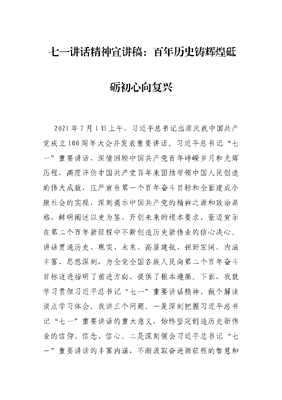 七一讲话精神宣讲稿:百年历史铸辉煌砥砺初心向复兴.docx