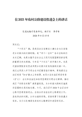 交通运输厅党委书记、副厅长李学东在2021年农村公路建设推进会上的讲话.docx