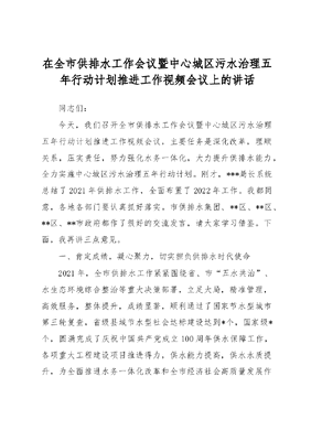 全市供排水工作会议暨中心城区污水治理五年行动计划推进工作视频会议上的讲话.docx