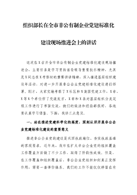组织部长在全市非公有制企业党建标准化建设现场推进会上的讲话.docx