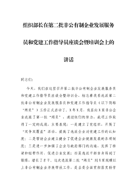 组织部长在第二批非公有制企业发展服务员和党建工作指导员座谈会暨培训会上的讲话.docx