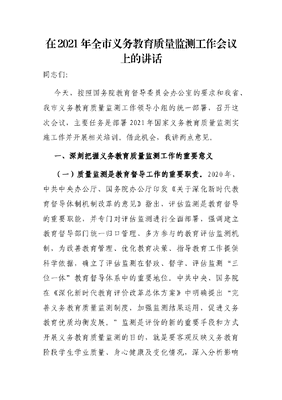 在2021年全市义务教育质量监测工作会议上的讲话.docx
