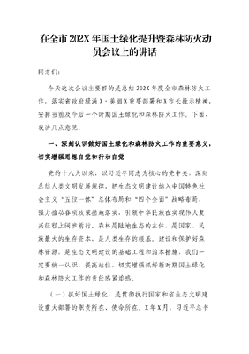 在全市202X年国土绿化提升暨森林防火动员会议上的讲话.docx
