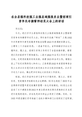 在全县强科技强工业强县域强服务业暨招商引资争先夺旗誓师动员大会上的讲话.docx