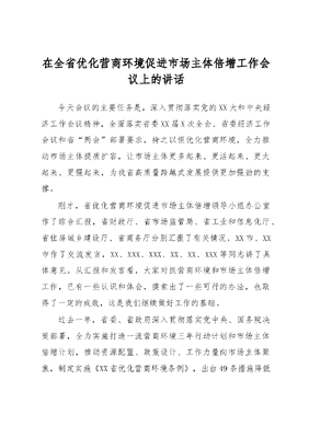 在全省优化营商环境促进市场主体倍增工作会议上的讲话.docx