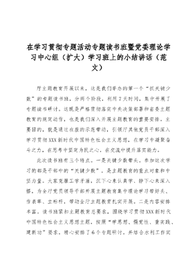 在学习贯彻专题活动专题读书班暨党委理论学习中心组(扩大)学习班上的小结讲话(范文).docx