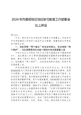2024年市委领导在党纪学习教育工作部署会议上讲话.docx