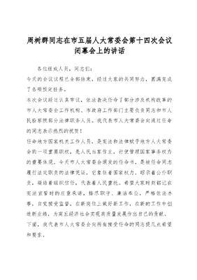 周树群同志在市五届人大常委会第十四次会议闭幕会上的讲话.docx