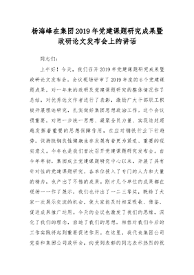 杨海峰在集团2019年党建课题研究成果暨政研论文发布会上的讲话.docx