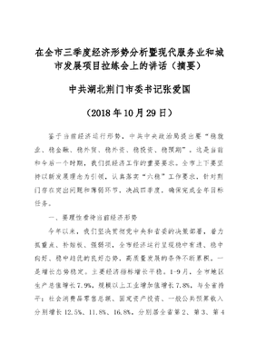 在全市三季度经济形势分析暨现代服务业和城市发展项目拉练会上的讲话摘要.docx