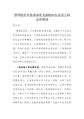 督导组长在县委办党支部组织生活会上的点评讲话.docx