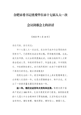 合肥市委书记虞爱华在市十七届人大一次会议闭幕会上的讲话.docx