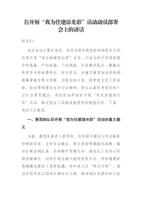 在开展“我为住建添光彩”活动动员部署会上的讲话.docx