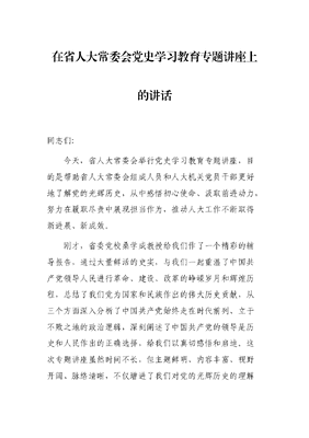 在省人大常委会党史学习教育专题讲座上的讲话.docx
