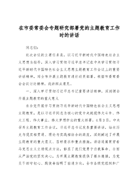 在市委常委会专题研究部署党的主题教育工作时的讲话.docx