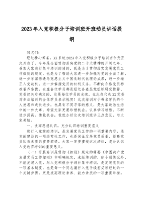 2023年入党积极分子培训班开班动员讲话提纲.docx