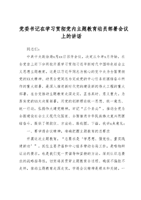 党委书记在学习贯彻党内主题教育动员部署会议上的讲话.docx
