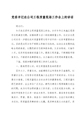 党委书记在公司工程质量现场工作会上的讲话.docx