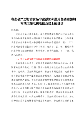 在全省严厉打击食品非法添加和滥用食品添加剂专项工作电视电话会议上的讲话.docx