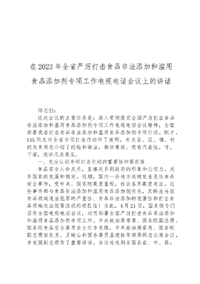 在2023年全省严厉打击食品非法添加和滥用食品添加剂专项工作电视电话会议上的讲话.docx