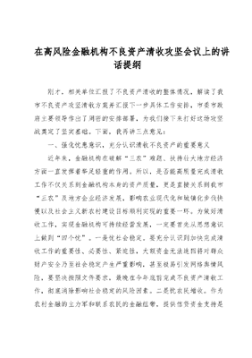 在高风险金融机构不良资产清收攻坚会议上的讲话提纲.docx