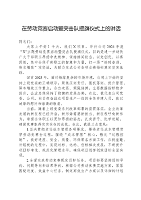 在劳动竞赛启动暨突击队授旗仪式上的讲话.docx