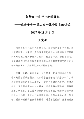 知行合一言行一致抓落实!在市委十一届二次全体会议上的讲话.doc