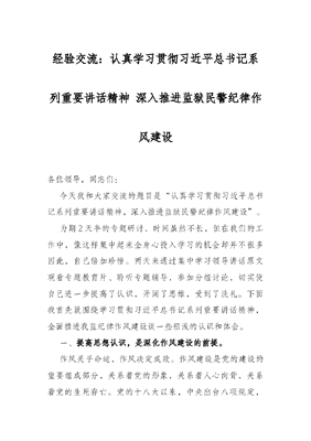 经验交流:认真学习贯彻习近平总书记系列重要讲话精神 深入推进监狱民警纪律作风建设.docx