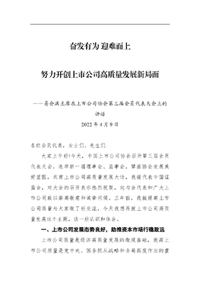 奋发有为 迎难而上 努力开创上市公司高质量发展新局面——易会满主席在上市公司协会第三届会员代表大会上的讲话.docx