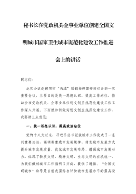 秘书长在党政机关企事业单位创建全国文明城市国家卫生城市规范化建设工作推进会上的讲话.docx