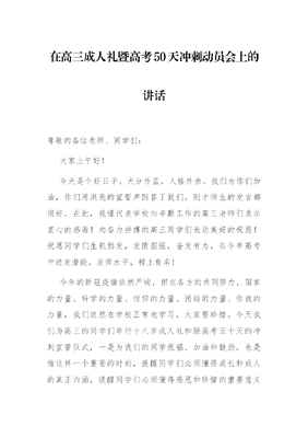 在高三成人礼暨高考500天冲刺动员会上的讲话.docx