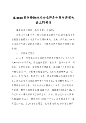 在xxxx医学检验技术专业开办十周年庆祝大会上的讲话.docx