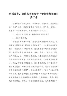 讲话发言:浅谈在当前形势下如何做好招商引资工作.docx