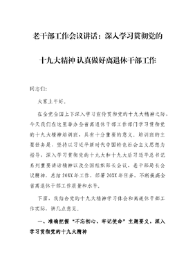 老干部工作会议讲话:深入学习贯彻党的十九大精神 认真做好离退休干部工作.docx