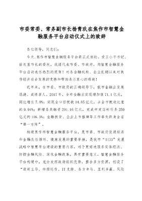 市委常委、常务副市长杨青玖在焦作市智慧金融服务平台启动仪式上的致辞.docx