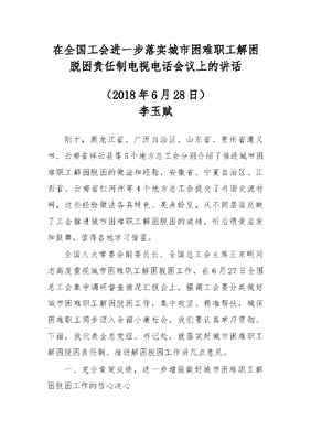 在全国工会进一步落实城市困难职工解困脱困责任制电视电话会议上的讲话.docx