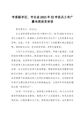 市委副书记、市长在2023年XX市征兵工作广播电视动员讲话.docx