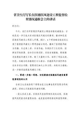 省卫生厅厅长在医德医风建设工程监督检查情况通报会上的讲话.docx