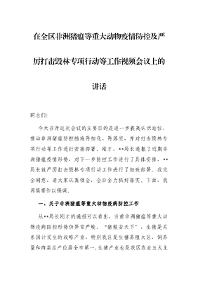 在全区非洲猪瘟等重大动物疫情防控及严厉打击毁林专项行动等工作视频会议上的讲话.docx
