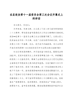 在县政协第十一届委员会第三次会议开幕式上的讲话.docx