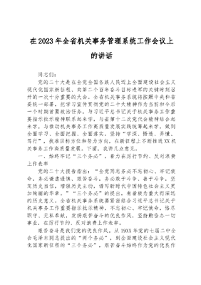 在2023年全省机关事务管理系统工作会议上的讲话.docx