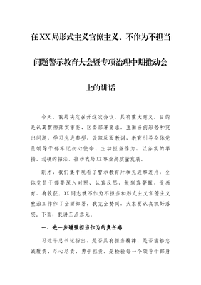 在XX局形式主义官僚主义、不作为不担当问题警示教育大会暨专项治理中期推动会上的讲话.docx