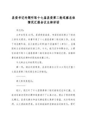 县委书记专题听取十七届县委第二轮巡察总体情况汇报会议主持讲话.docx