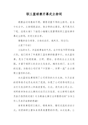 职工篮球赛开幕式主持词.docx