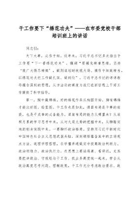 干工作要下“绣花功夫”——在市委党校干部培训班上的讲话.docx