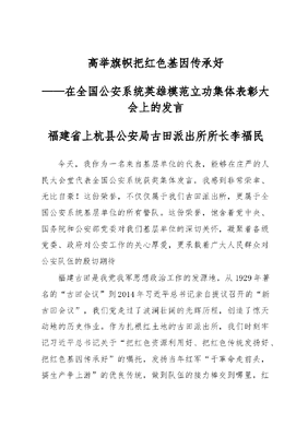 福建省上杭县公安局古田派出所所长 李福民在全国公安系统英雄模范立功集体表彰大会上的发言.docx