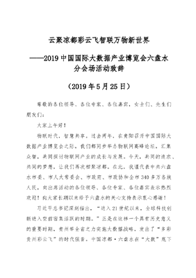 2019中国国际大数据产业博览会六盘水分会场活动致辞.docx
