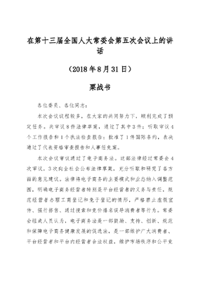 栗战书在第十三届全国人大常委会第五次会议上的讲话.docx